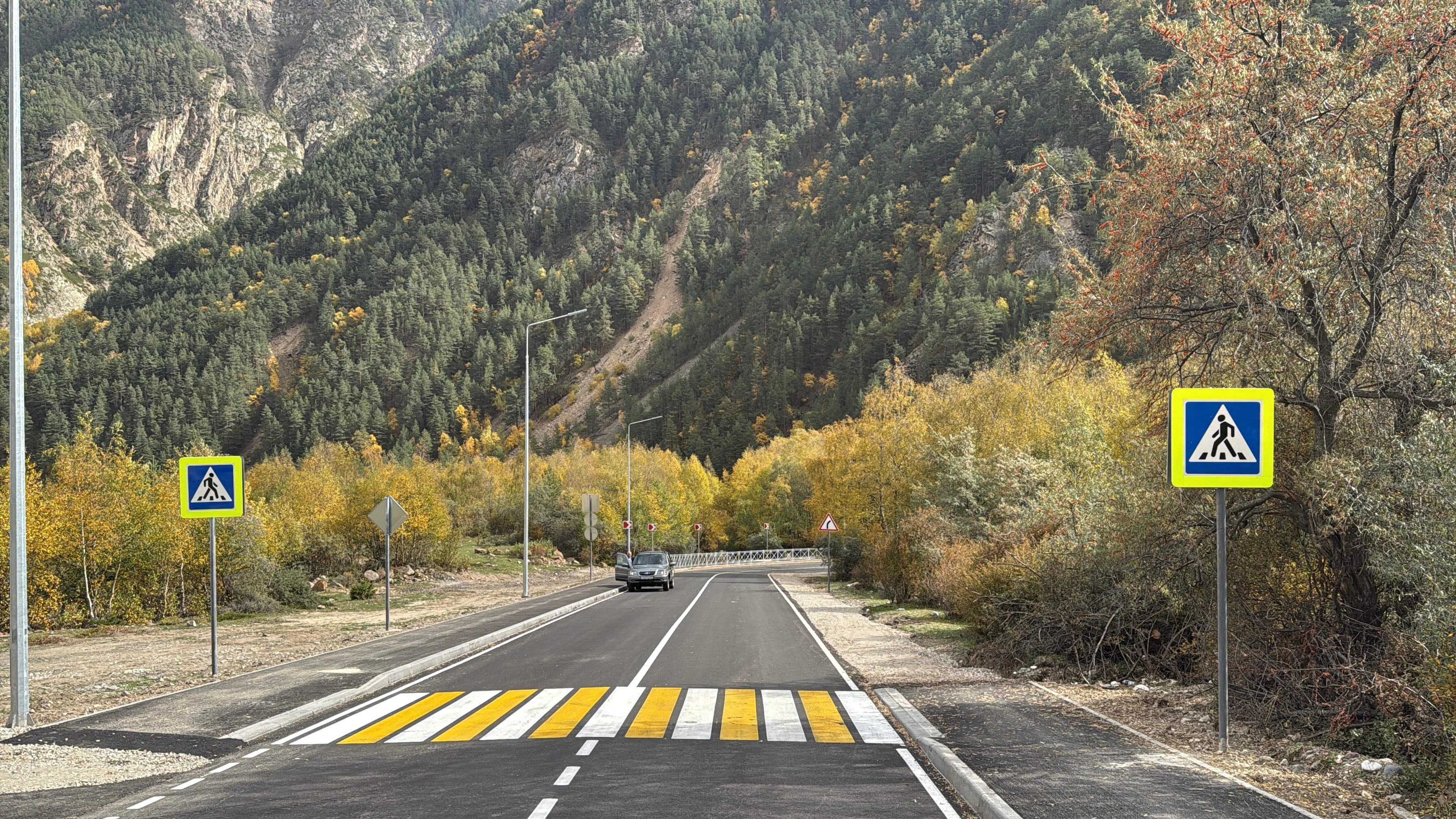 Обустроено около 25 км тротуаров и установлено 80 современных павильонов на остановках, что повышает комфорт и безопасность жителей. Активно внедряются светофоры типа Т.7 с импульсной индикацией — в республике уже действует 95 таких объектов.