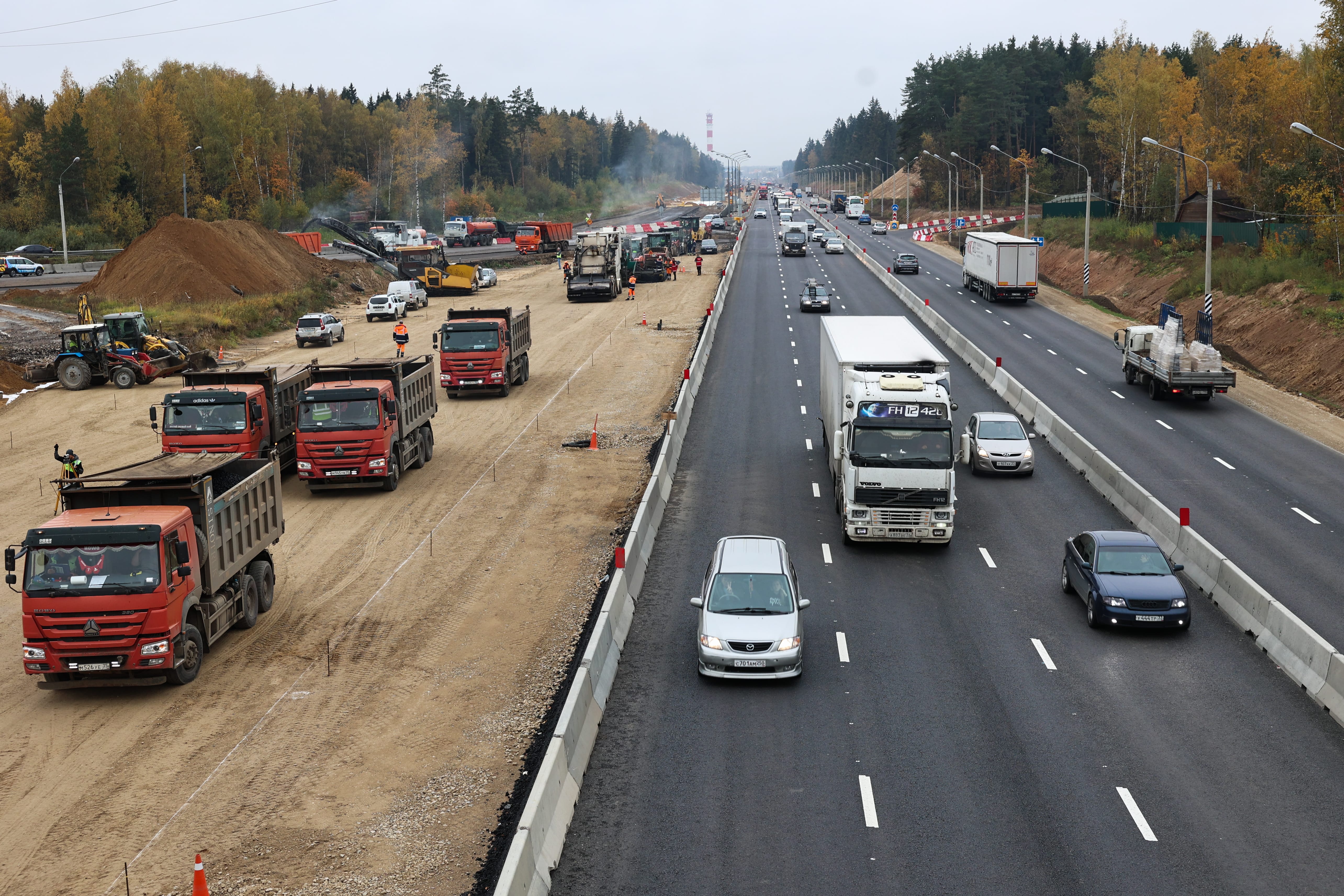 На отрезке автодороги с 40-го по 43-й км дорожники продолжают работы по увеличению полос движения, строительству транспортной развязки и реконструкции подземного пешеходного перехода возле поселков Лесной и Кощейково. А на отрезке с 43-го по 47-й км продолжается устройство земляного полотна и слоев покрытия, установка опор освещения и монтаж барьерного ограждения.